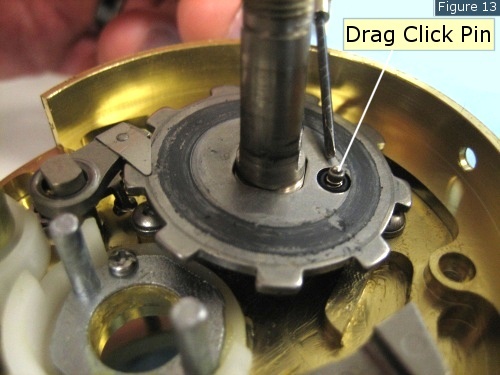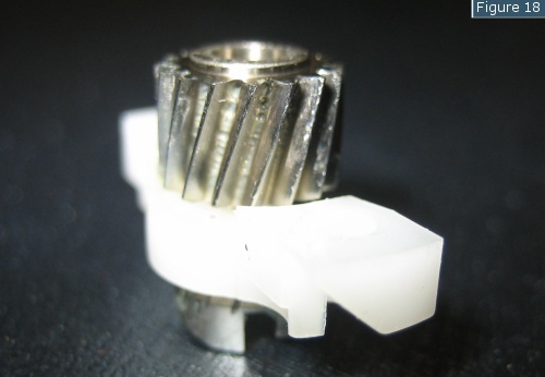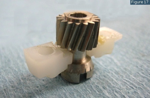 16) Remove the anti reverse ratchet and assist stopper pawl. Pay attention to the position of the ratchet. It can be installed upside down later. This will cause the clutch to not reengage. This is also a good time to inspect the assist stopper. If excessive wear can be seen then there is a good chance the anti reverse bearing has failed. [Figures 9 & 10]