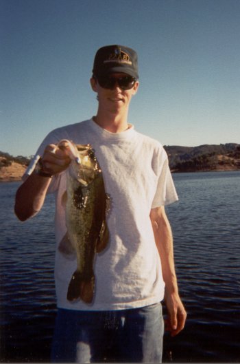 There are a couple of different brands of swimbaits on the market that fit into the small swimbait category. The most well known are Big Hammer, Fish Trap, Worm King, and AA. I am sponsored by Big Hammer / Fishco Mfg. and fish their baits exclusively. I have a lot of confidence in the Big Hammer bait and it has produced a lot of nice fish for me. While the fish have shown a definite preference for the 5 and 5.5" baits over 4" and smaller baits, the color doesn't seem to matter very much. I've caught fish on the rainbow trout, sardine, brownbait, and smelt colors with no discernable preference demonstrated by the fish even on the same day, same spot, etc. If I had to pick one bait though, I would probably throw the #13 big hammer color, Silver Flash / Green Back. It's a great all around baitfish imitator. There are only a few good leadheads on the market, and you are kidding yourself if you aren't fishing the Fischo Mfg. Head. They use Mustad UltraPoint hooks and come painted or unpainted with the "googly eyes". I use either 3/4 oz or 1 oz depending on the depth that I'm fishing. I've caught a few fish dragging a 1.5 oz head across the bottom but this technique was only productive for a short period of time. I haven't done much on the 1/2 heads for freshwater bass although I am always experimenting depending on the conditions. Rigging the bait straight is VERY important and comes only with practice. The most important thing is to thread the hook through the bait in one continuous movement. If you stop half way and then keep going, you'll probably wind up going a slightly different direction and the bait will run lopsided. As you thread the bait the hook will come out the back of the bait in the right position naturally. If you find yourself stretching the plastic or bunching it up while you rig the bait, you are doing something wrong. A good idea when you are first rigging baits is to hold the bait next to the jighead and mark where the hook should come out. Aim for that spot and you should do ok. I will sometimes add a little superglue to the head of the bait to keep it from sliding down the hook. This isn't critical but is a good solution if your bait is chewed up and you don't want to rig another one.