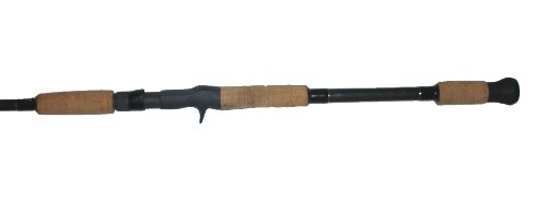 7'6" IM8 Graphite 15-30 and 15 to 40 1-5oz and 2-8oz Fuji Alconite Concept Okuma introduced their swimbait rods in mid-2004. These are 7'6" blanks with the Alconite Concept guides, Fuji reel seat, and a rather interesting rear grip that exposes about 8" of the blank between cork sections. The rods are very heavy action and have a reinforced butt section which Okuma calls Evo Graph on the first 3 feet or so of the rod. It's basically a wrapper over the blank to give the butt section extra rigidity and strength. Most of the Okuma product line is priced to appeal to the mass market, and these rods are no exception. They retail for $89 which is a pretty sweet price for the rod you get. On a price to performance ratio, I don't think you're going to beat it right now on the market. Unlike some other so called swimbait rods that are just worm or jig rods re-wrapped and re-marked as swimbait rods, these blanks were designed from the ground up to actually throw a big swimbait. These rods are stiff! The GS-C-761H is a very heavy duty rod, and the GS-C-761XH is bordering on being a broomstick. These are rods for heavy rubber and big wood, not for smaller lighter baits. Another bait this rod will work well with is the regular Mission Fish with its huge G-Mag hook. If you swing for fences with these rods, you'll rip the fish about 10 feet in the right direction. They have serious backbone. The exposed rear grip is kind of interesting. I like it a lot on my Castaway flipping stick, but am somewhat ambiguous on a casting rod. The only real purpose I can see for it is to lighten the rod up. With the rod tucked under your arm, you might get a little more feel, but it's questionable. I do like the round butt end because you can sort of palm it while you cast. Being able to grip the rod there helps makes up for the fact that the rod is only 7'6". Like a lot of big bait rods, this rod will work out nicely in the ocean. I broke it in on some bass fishing with 5" Big Hammers on the GS-C-761H and it kicks their butt pretty good. And since ocean fish don't jump, you don't have to worry about tearing out the hooks. So I'm really not kidding about how stiff the rod is. I would not recommend it for the small to medium hardbaits with two hanging hooks because it's the kind of action that can tear the hooks out too easily. You could throw a 9" wood bait on the GS-C-761H and it would be OK, but I still don't think it's ideal. If you're wondering what the catch is for an $89 rod, the only real catch I can see is the cosmetics. I checked out 4 rods, two of each model. There were some spots where a little glue had gotten into the feet of the guides, and the little hook keeper on one was crooked. Personally, I could do without the hook keeper so I just broke it off and filed it, but whatever, its cosmetics. Just don't think that for $89 you're going to get a perfectly finished beautiful rod. This is function over form.